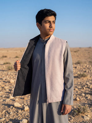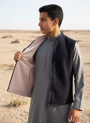 سترة شتوية دافئة وأنيقة، مصممة لتكمل أناقة الدشداشة التقليدية. مصنوعة من مزيج فاخر من الأقمشة لتوفير الراحة والعزل الحراري، ولمسة راقية متعددة الطبقات خلال فصل الشتاء.