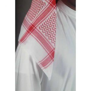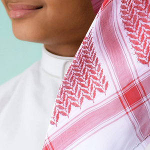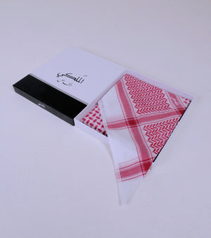 غطاء رأس منقوش، عادةً ما يكون باللونين الأحمر والأبيض أو الأسود والأبيض، يعكس ثقافة المنطقة العربية، ويختلف ارتداؤه باختلاف المناطق، ليمنحها أقصى درجات الراحة في الطقس الحار. تصميمه الأنيق والراقي يمنحها مظهرًا أنيقًا وعصريًا للارتداء اليومي.