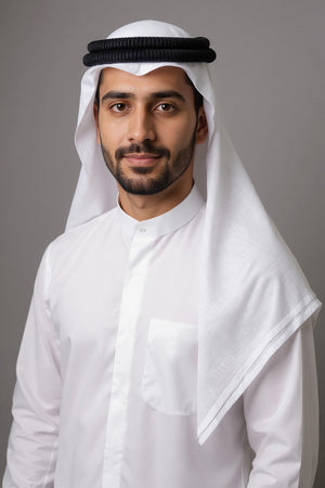 غطاء رأس أبيض تقليدي، مصنوع غالبًا من القطن، يرمز إلى الأناقة والهوية الثقافية. يوفر أقصى درجات الراحة في الطقس الحار. تصميمه الأنيق والبسيط يمنح مظهرًا أنيقًا وعصريًا للارتداء اليومي.