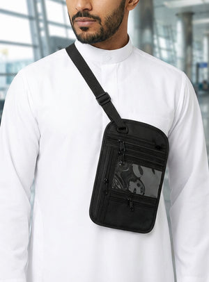 حقيبة جواز سفر أنيقة مع حزام كتف، لتوفير الراحة أثناء السفر مع إبقاء يديك حرتين. تحافظ على أغراضك الأساسية آمنة وفي متناول يديك.
