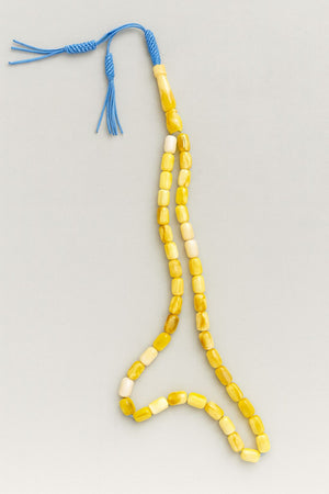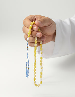A unique yellow-and-blue misbah symbolizing calmness and joy.