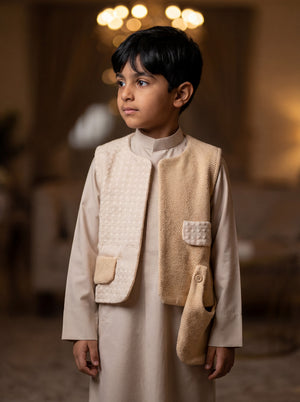Boys’ Beige Half and Half Gergean Vest With Bag