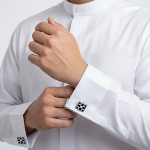 Elegant accessories used to fasten the cuffs of the dishdasha’s sleeves, adding a touch of sophistication and personal style to traditional attire. Its crisp, clean design offers a cool and elegant look for everyday wear.