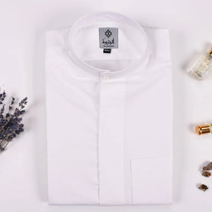 A lightweight, breathable white dishdasha designed for hot weather, offering comfort and a crisp, clean look ideal for summer days. for ultimate comfort in hot weather. Its crisp, clean design offers a cool and elegant look for everyday wear.