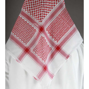 A patterned headscarf, usually in red-and-white or black-and-white, offering both cultural expression worn differently in different parts of arab world for ultimate comfort in hot weather. Its crisp, clean design offers a cool and elegant look for everyday wear.
