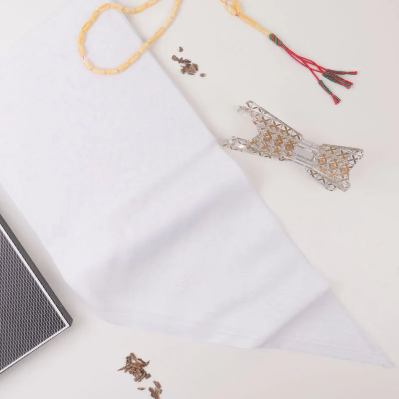 A traditional white headscarf worn, often made of cotton, symbolizing elegance and cultural identity. for ultimate comfort in hot weather. Its crisp, clean design offers a cool and elegant look for everyday wear.