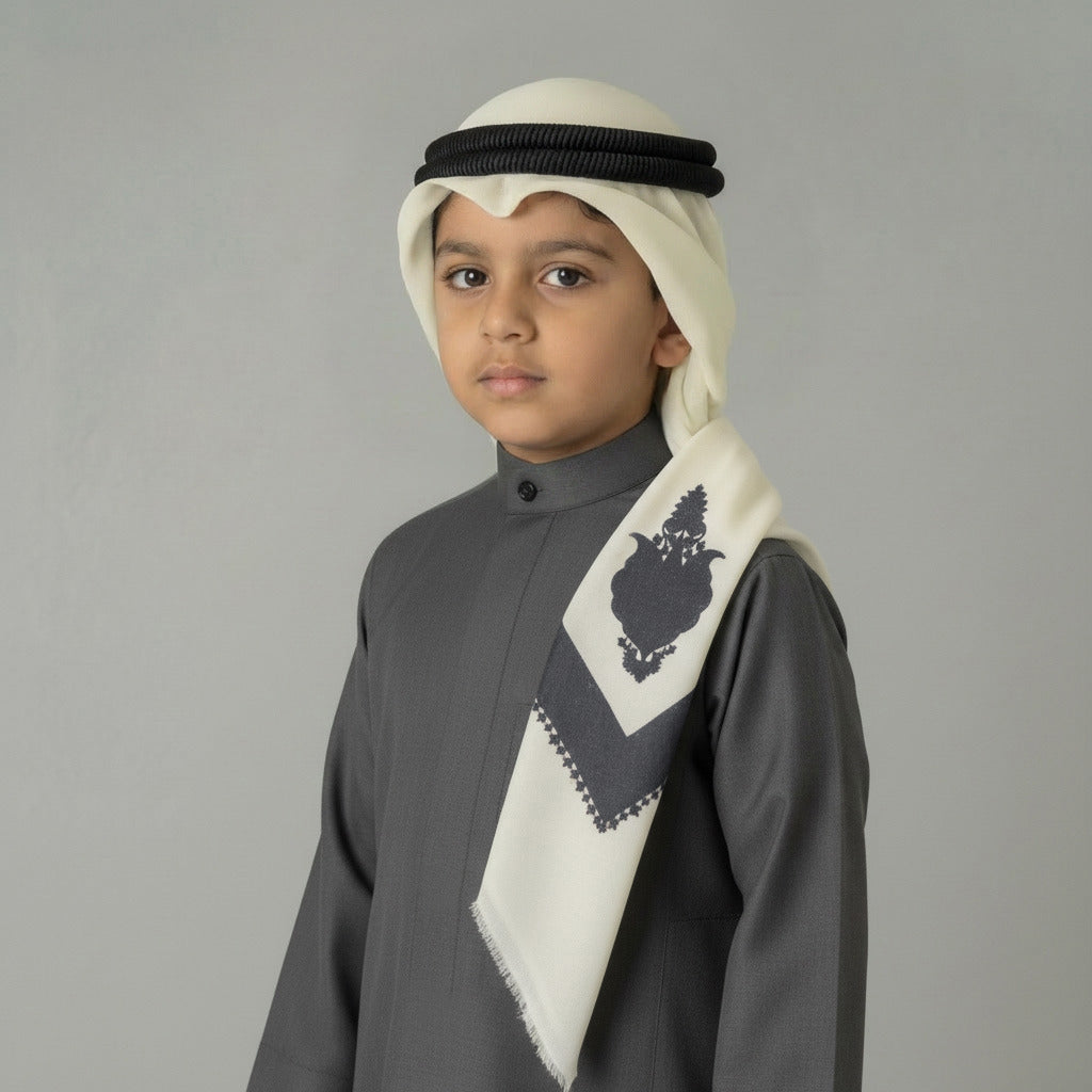 Boy’s Ready-Made Slim Indian White Pattern Wool Shawl With Gahfiya And Agal by Al Jazeera