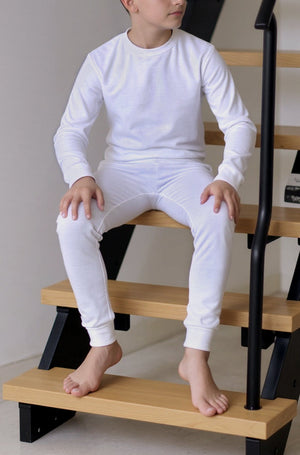 A close-fitting two-piece underwear set designed to retain body heat and provide insulation in cold weather, ideal as a base layer. for ultimate comfort in hot weather. Its crisp, clean design offers a cool and elegant look for everyday wear.