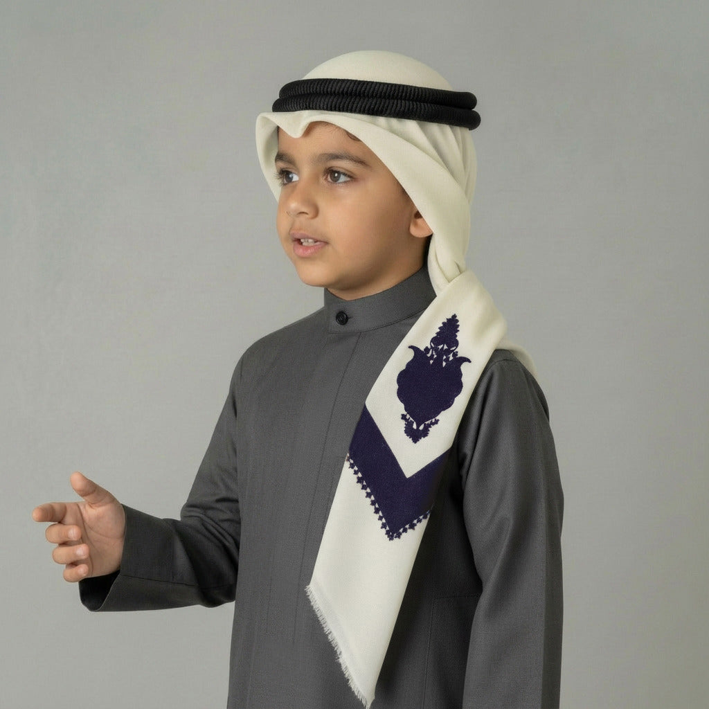 شال صوف هندي أبيض بنقشة ملونة للأولاد من الجزيرة
