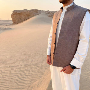 ثوب بدون أكمام مصمم لتوفير دفء إضافي وارتداء متعدد الطبقات في الطقس البارد، ويُلبس عادةً فوق الملابس التقليدية أو الكاجوال لراحة قصوى. تصميمه الأنيق والبسيط يمنحه مظهرًا أنيقًا وعصريًا للارتداء اليومي.